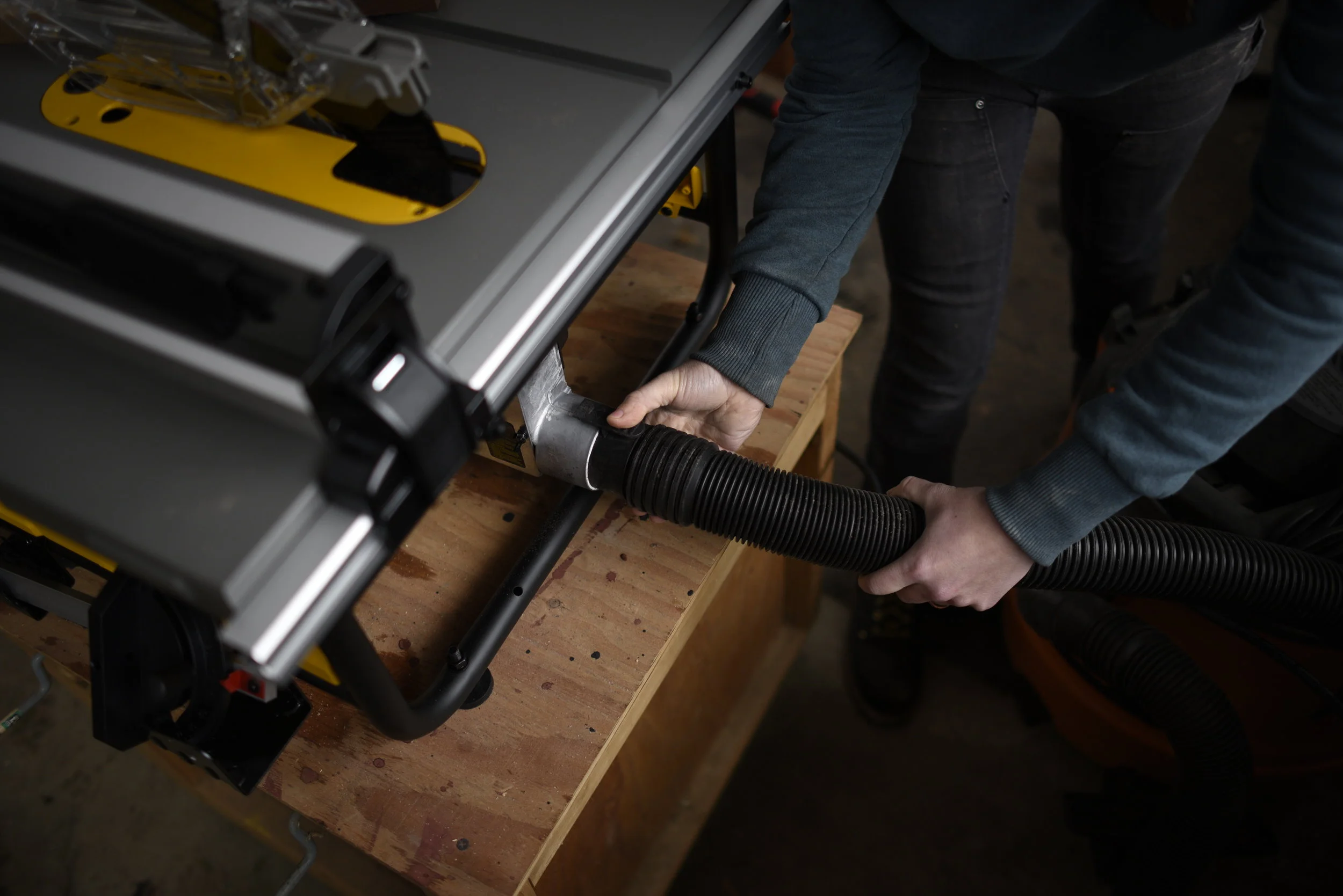Used indoors, this saw is significantly louder than my cabinet saw, but that is understandable, seeing as the motor isn’t enclosed in a cabinet. Most other Dewalt table saws have a dust collection port built into the guard, but this one doesn’t have one. That said, I don’t generally use dust collection when outdoors, which is the only place I intend to use this saw, so that is a bit of a mute point, plus, the dust collector port located below the saw does a pretty good job by itself. My biggest complaint about this saw is that the arbor cannot accommodate a dado blade. By changing that one feature, this saw would become infinitely more valuable to me.